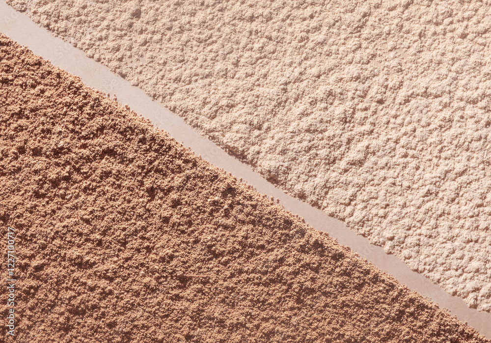 Sculptor or two colors of compact powder brown and beige nude smudge textured background diagonal composition
