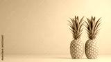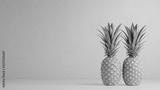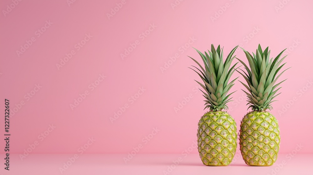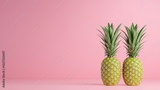 Two fresh pineapples on a vibrant pink background showcasing tropical fruits and colorful design elements