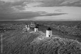 Aerial view of Windmills of Consuegra on sunset, Spain