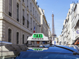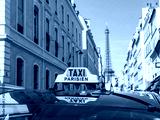 PARIS, FRANCE, on JULY 9, 2016. The Parisian taxi against the background of typical city architecture