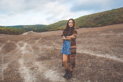 Woman is wearing clothes in boho style