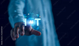 Business IoT AI automation concept, businessman with virtual Artificial Intelligence automation connect internet of thing on smartphone technology.