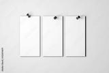 Blank white poster pinned to a plain wall with pushpins