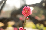Blossom tree, blooming little pink flowers on the branches of a plum tree outdoor in the Hamarikyu Gardens in Tokyo city at daytime in winter with blurry background in Japan.