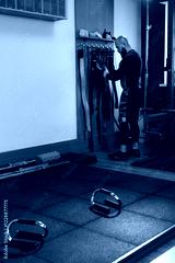 Fitness enthusiast prepares for strength training session at modern gym facility in natural light setting