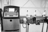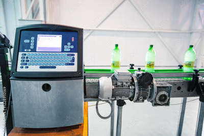 High-tech bottling line in a factory with automated machinery processing beverages