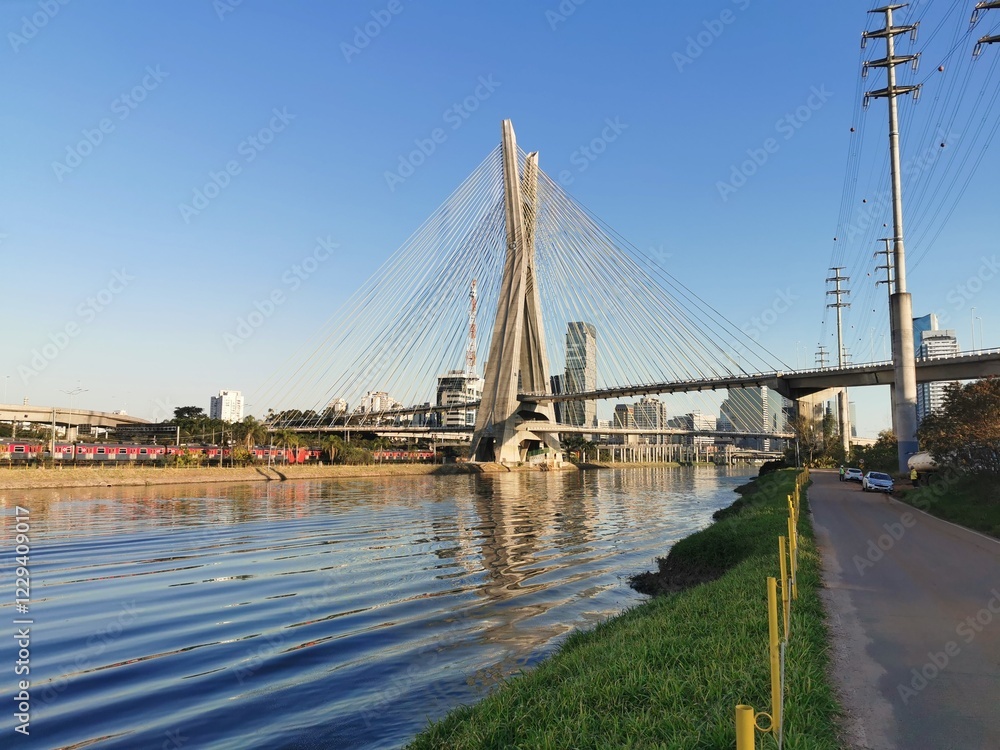 View of the cable-stayed bridge of the Marginal Pinheiros in Sao Paulo