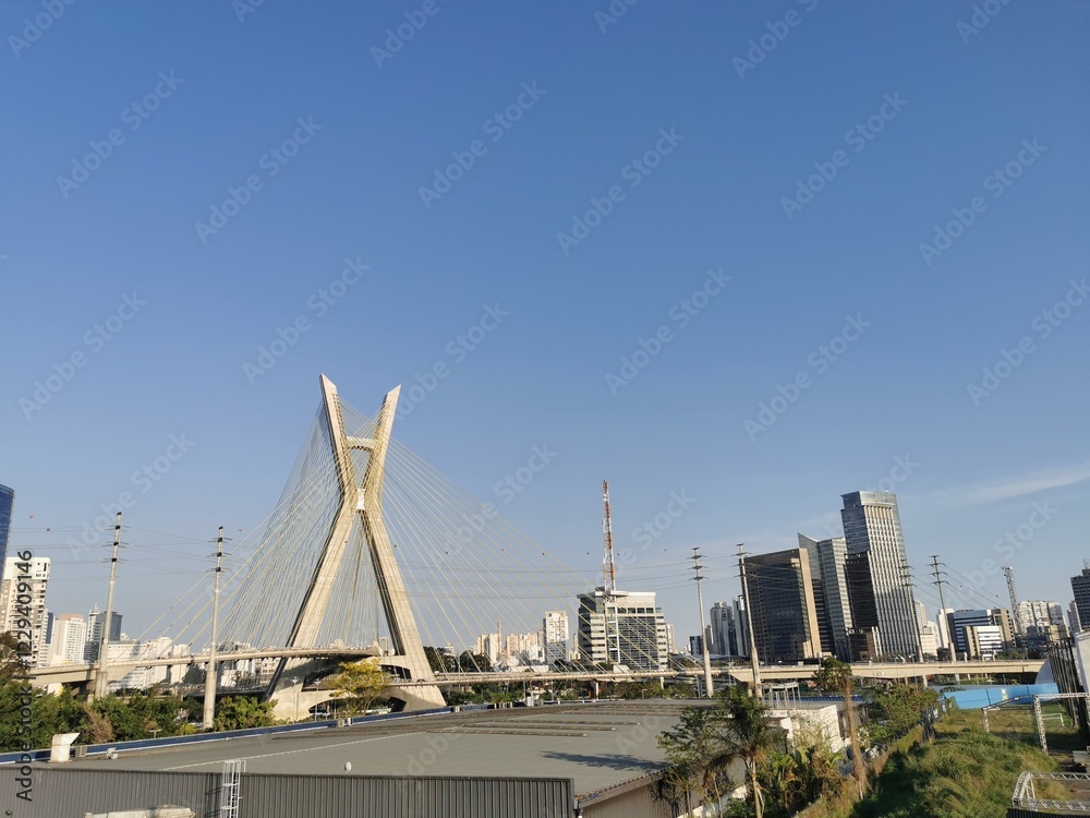 View of the cable-stayed bridge of the Marginal Pinheiros in Sao Paulo