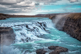 View of popular tourist destination - Gullfoss waterfall. Spectacular Hvita river. Iceland