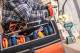 Worker Repairs Electrical Wiring With Tools in a Residential Setting