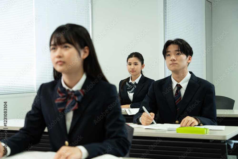 授業で勉強する高校の制服を着たアジアのティーンエイジャー