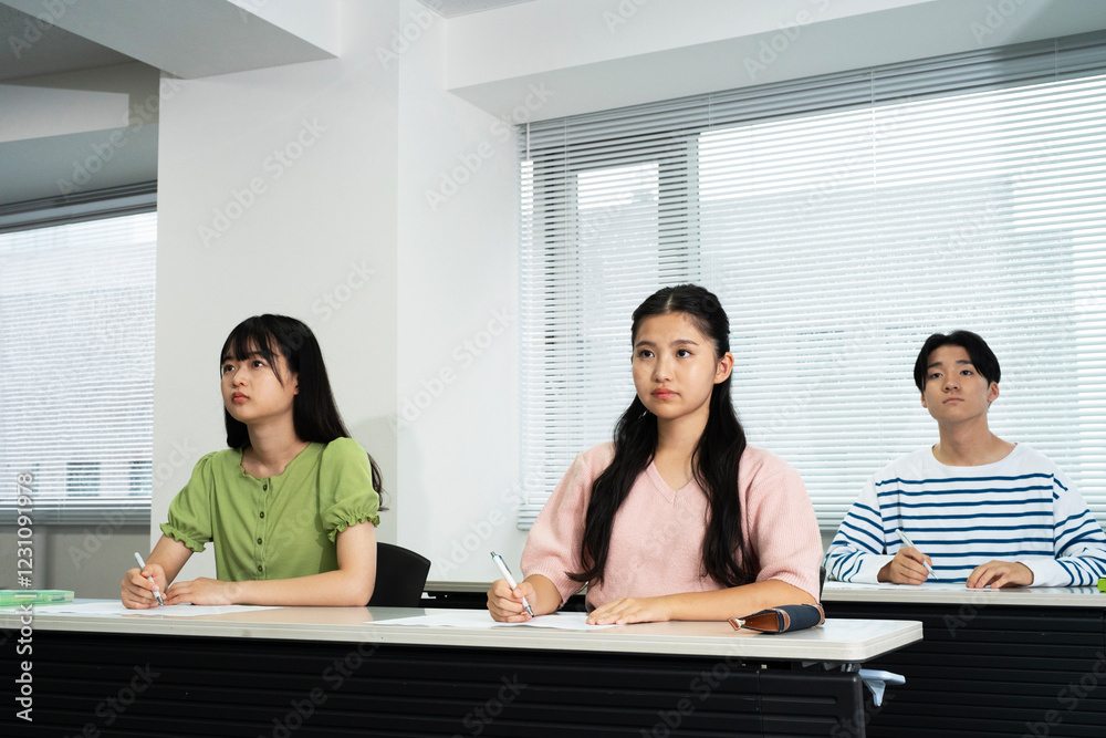 授業料のクラスで勉強するアジアのティーンエイジャー