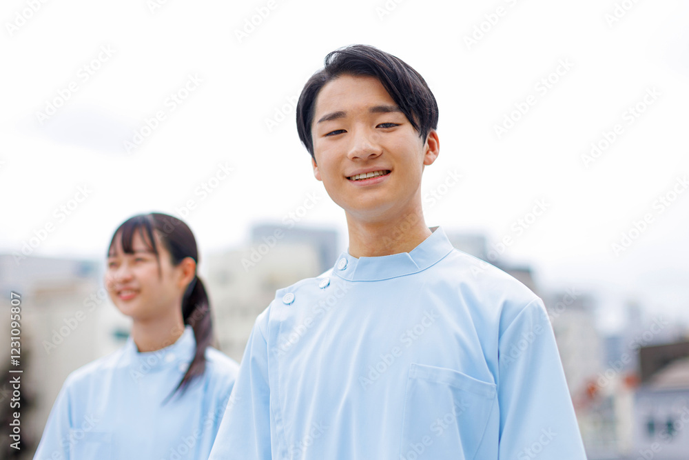 ナース服を着たアジアのティーンエイジャーの肖像画