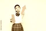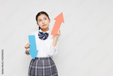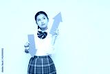 矢を保持している高校の制服を着たアジアの 10 代の少女の肖像画