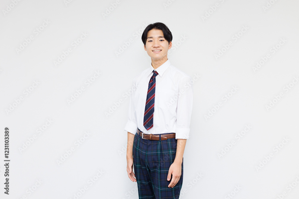 高校の制服を着たアジアの 10 代の少年の肖像画