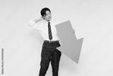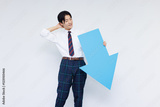 矢を持った高校の制服を着たアジアの 10 代の少年の肖像画