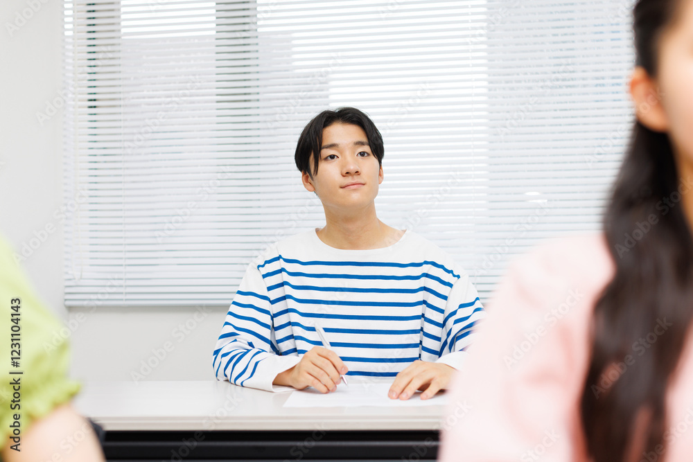 授業料のクラスで勉強するアジアのティーンエイジャー
