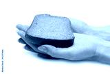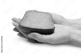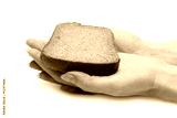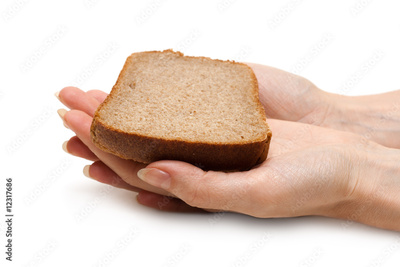 Piece of the pumpernickel in woman hands