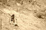 Hiking and leisure theme. Adventure people on hike hiking in nat
