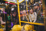 Woman playing toy grabbing game with friends