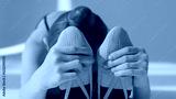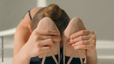 Little sportswoman young teen girl female gymnast ballerina dancer child daughter kid schoolgirl exercise training in gym bending stretching legs flexible feet sport gymnastics ballet dance workout
