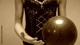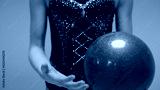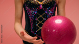 Cropped shot female hands rotating spinning gymnastic ball unrecognizable dancer ballerina artistic gymnast little girl child kid in leotard preparing for rhythmic gymnastics sport acrobatic exercise