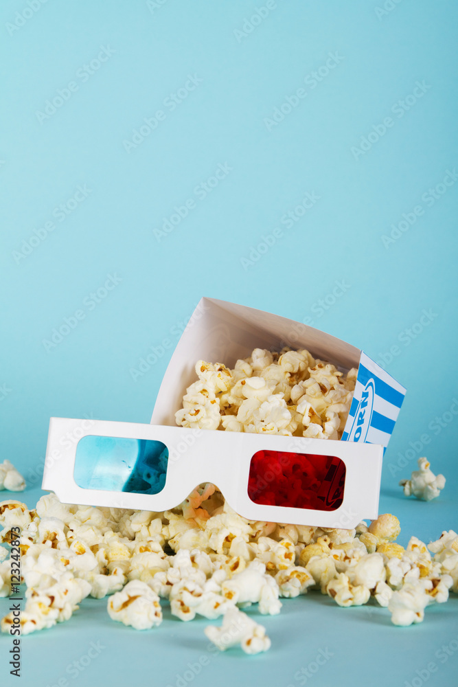 Popcorn bucket against a blue background