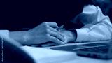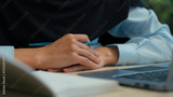 Cropped shot female hands student study use laptop write in notebook exam online education unknown muslim woman businesswoman girl employer worker writing notes business tasks schedule on table desk