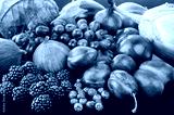 Blue and purple food. Berries, fruits and vegetables on a black background.