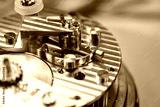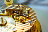 Intricate clock mechanism reveals the art of timekeeping through precision engineering and golden craftsmanship in a stunning close-up