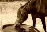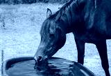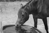 Horse drinking from a water trough on a hot summer day