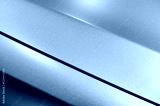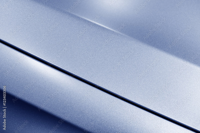 Surface of blue sport sedan car metal hood, part of vehicle bodywork, steel gradient line pattern, selective focus