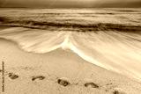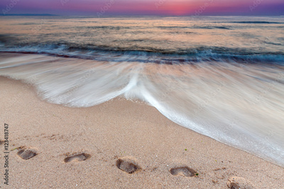 sea shore with a sandy beach with traces of feet
