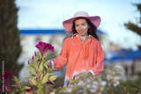 Model wearing stylish accessories & clothes. Girl looking aside