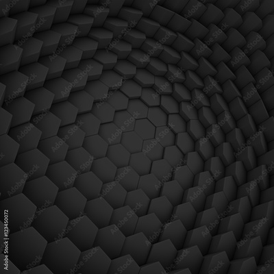 Black abstract hexagons backdrop. 3d rendering geometric polygons