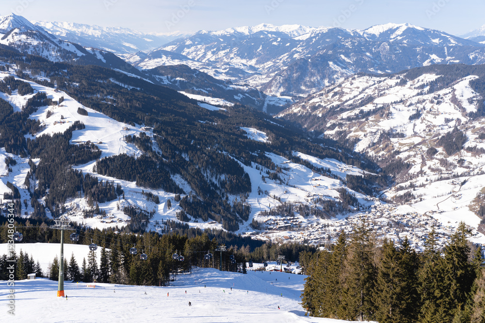 View of ski slopes near Flachau in Austrian Alps, Snow Space Salzburg, part of Ski Amade skiing area