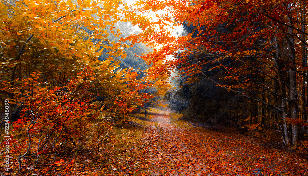 wonderful autumn view in the forest, stunning nature scenery