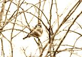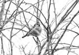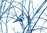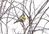 Blue tit ( Cyanistes caeruleus ) standing on branches tree in Autumn, Portrait of a titmouse,Tiny cute British bird in garden, Animal wildlife in Winter,Autumn