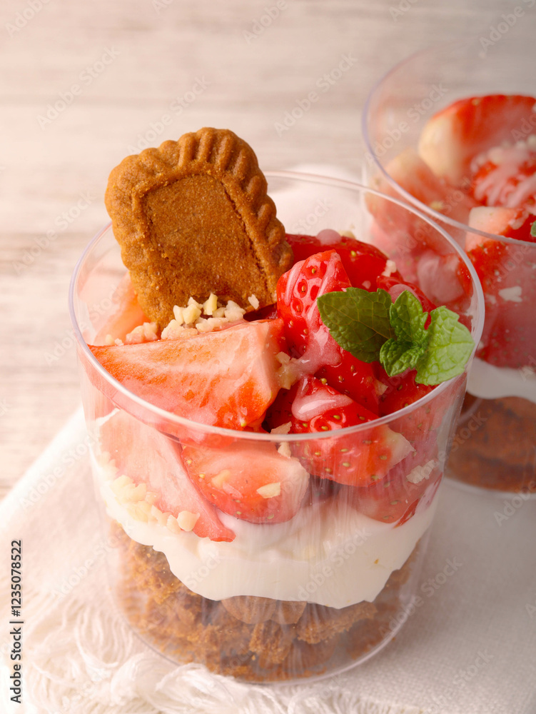 Biscoff strawberry trifle dessert in cups
