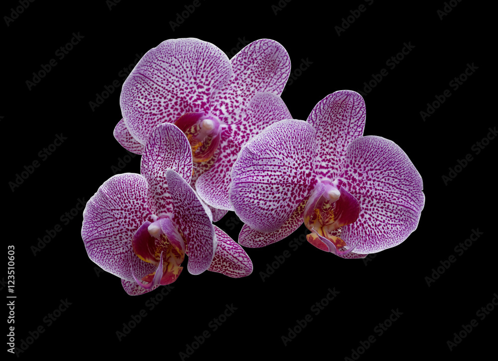Vanda orchid purple flowers on a black background (with clipping path).