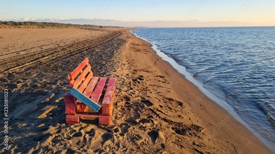 Wooden bench on the seashore