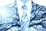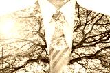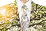 Double Exposure Businessman in Suit with Big Tree with Bright Sunlight
