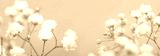 Smoke Soft focus blur white gypsophila flower bouquet on blur blue gray horizontal long background.