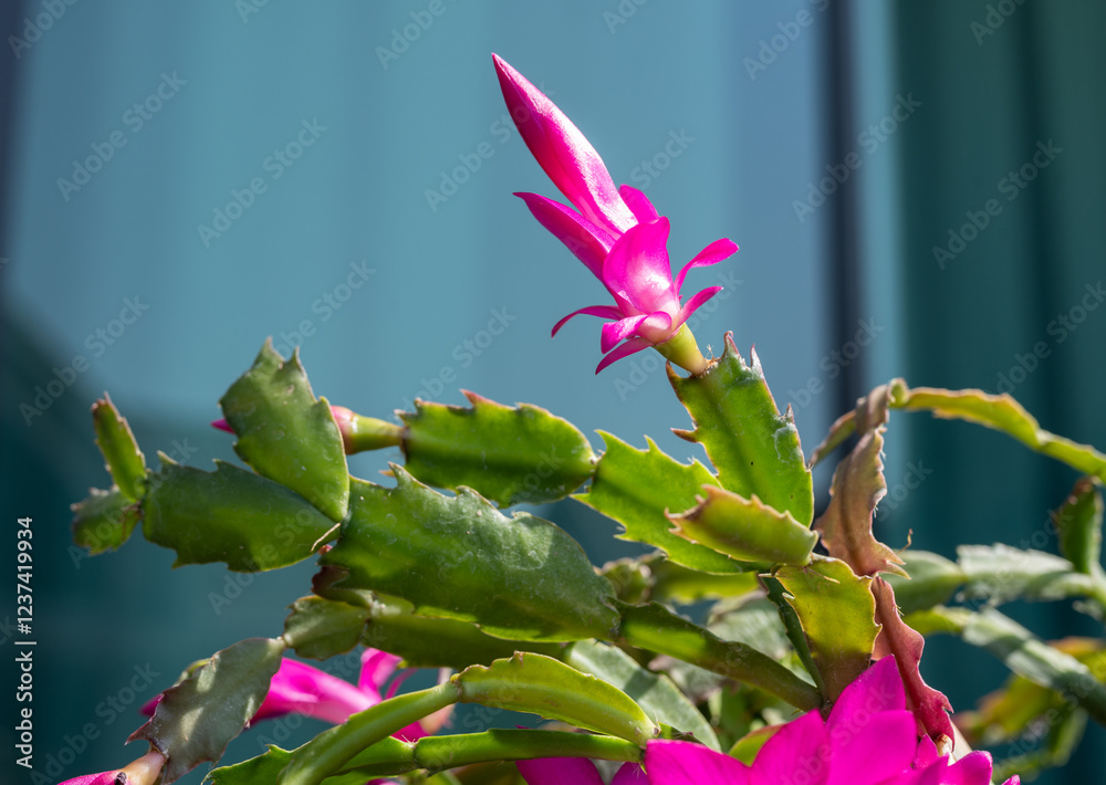 Close up of flower bud of Thanksgiving Cactus before blooming.