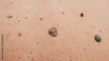 Moles and birthmarks on human skin close-up.