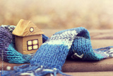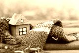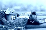 property insurance/ small wooden house in a warm blue scarf