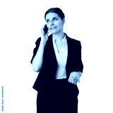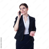 Smiling businesswoman standing over white isolated background