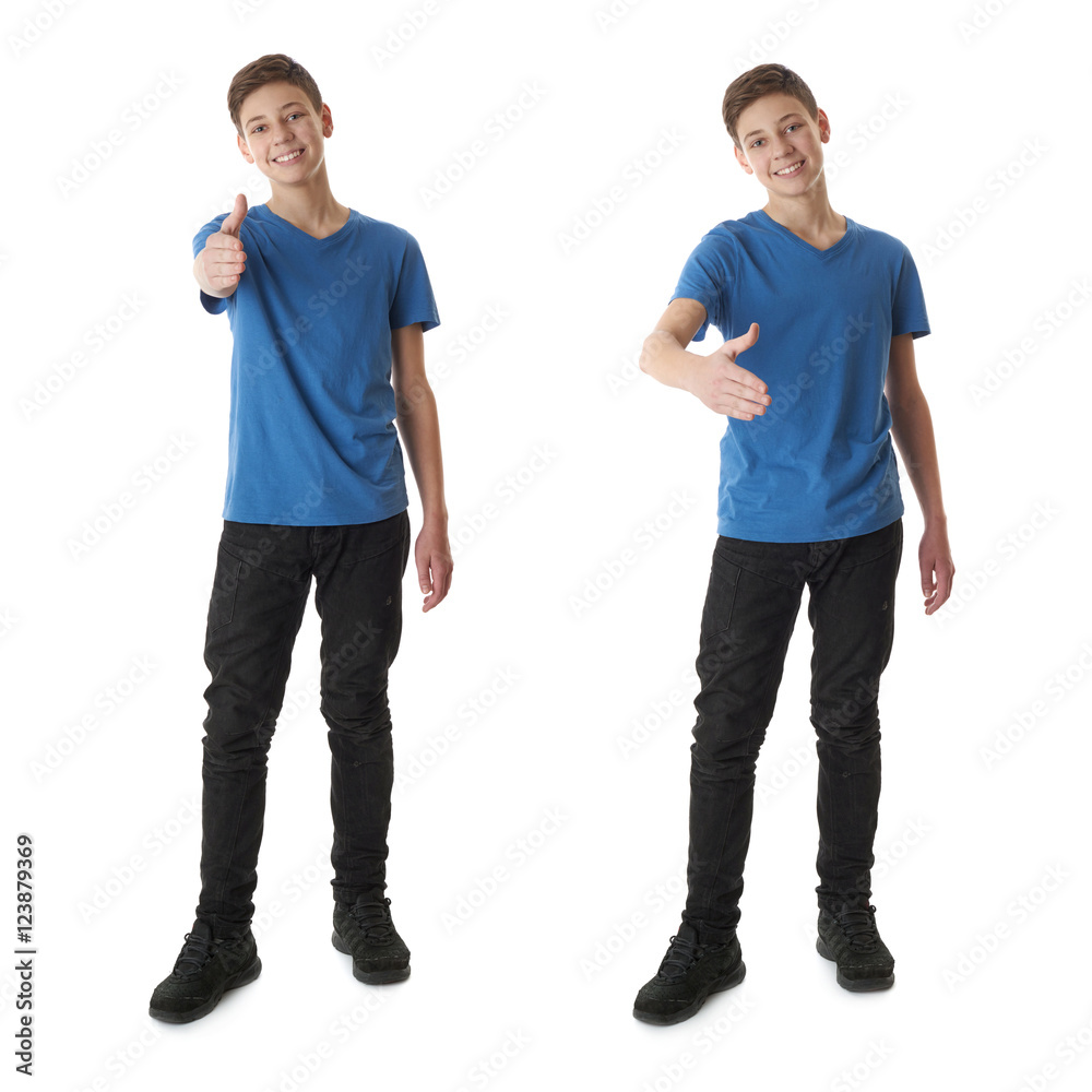 Set of cute teenager boy over white isolated background