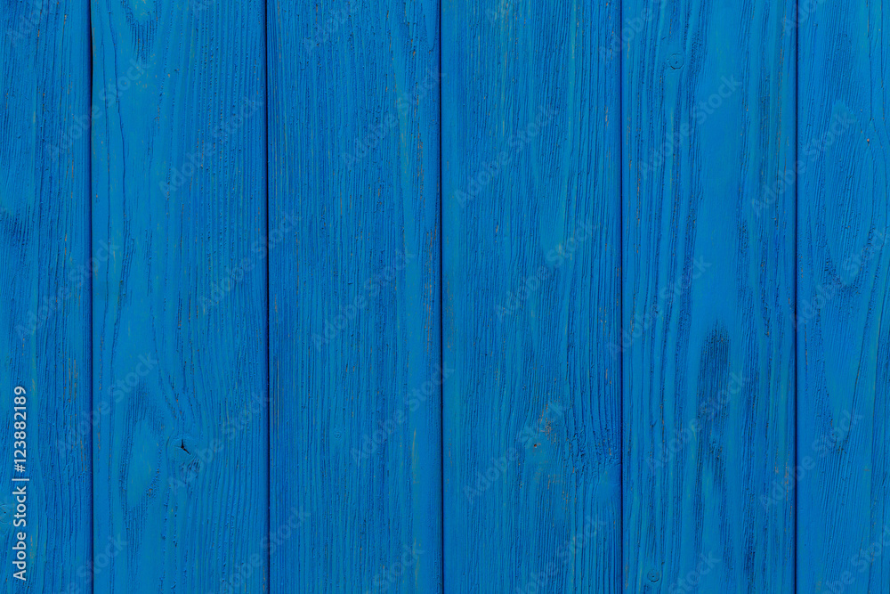 Shabby wooden vertical planks background with copyspace, blue color