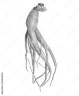 korean ginseng and ginseng root,Ginseng or Panax ginseng isolated on white background with clipping path